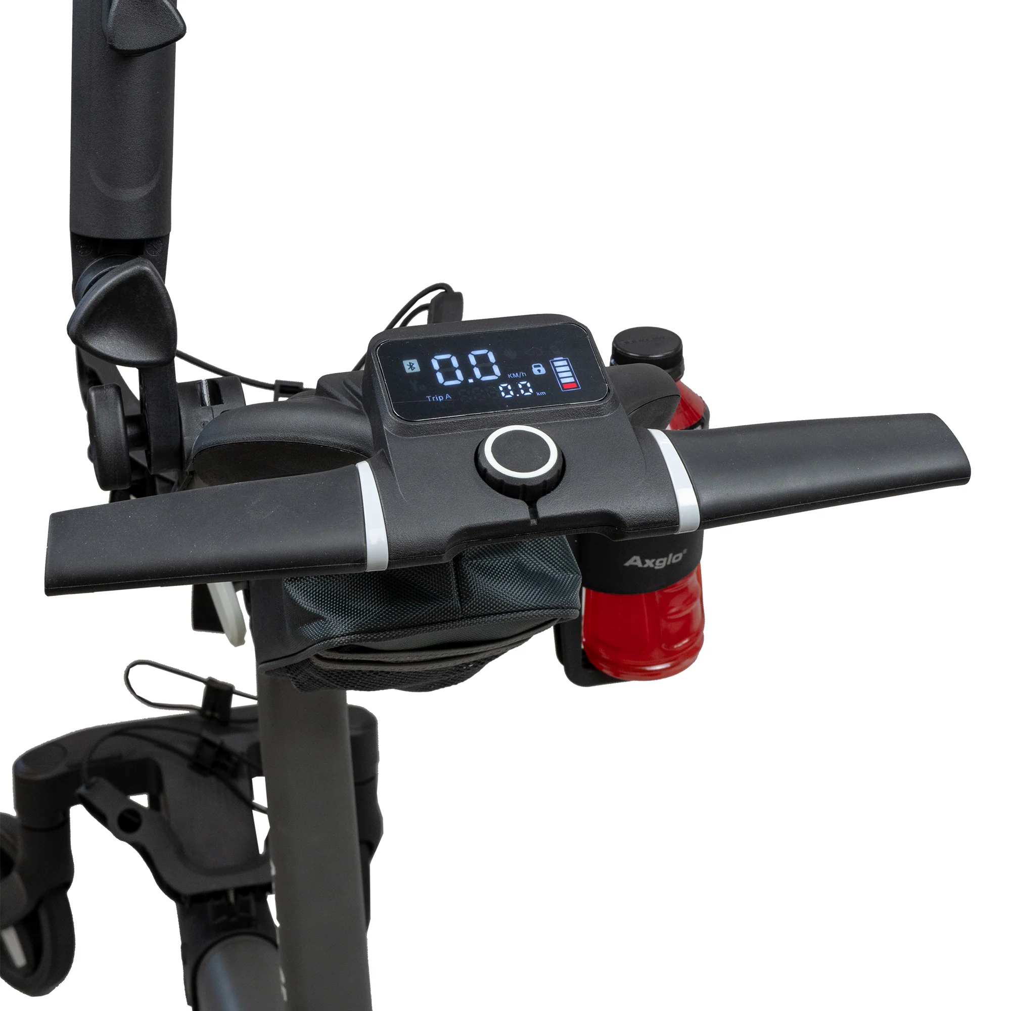 1. To turn on the Axglo e5: Press and hold the central dial for two seconds (The Cart is in lock mode)